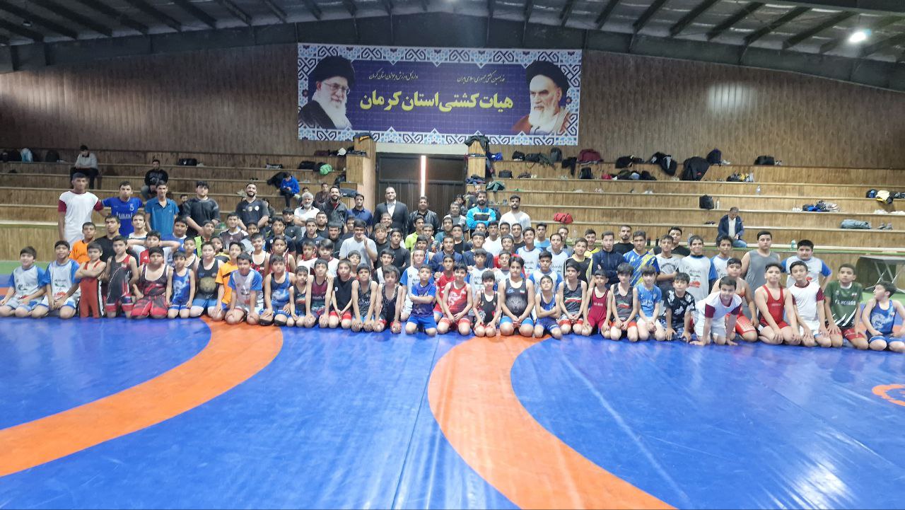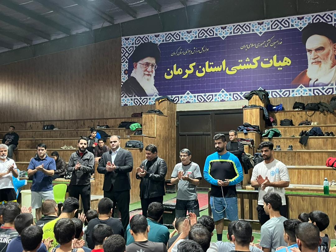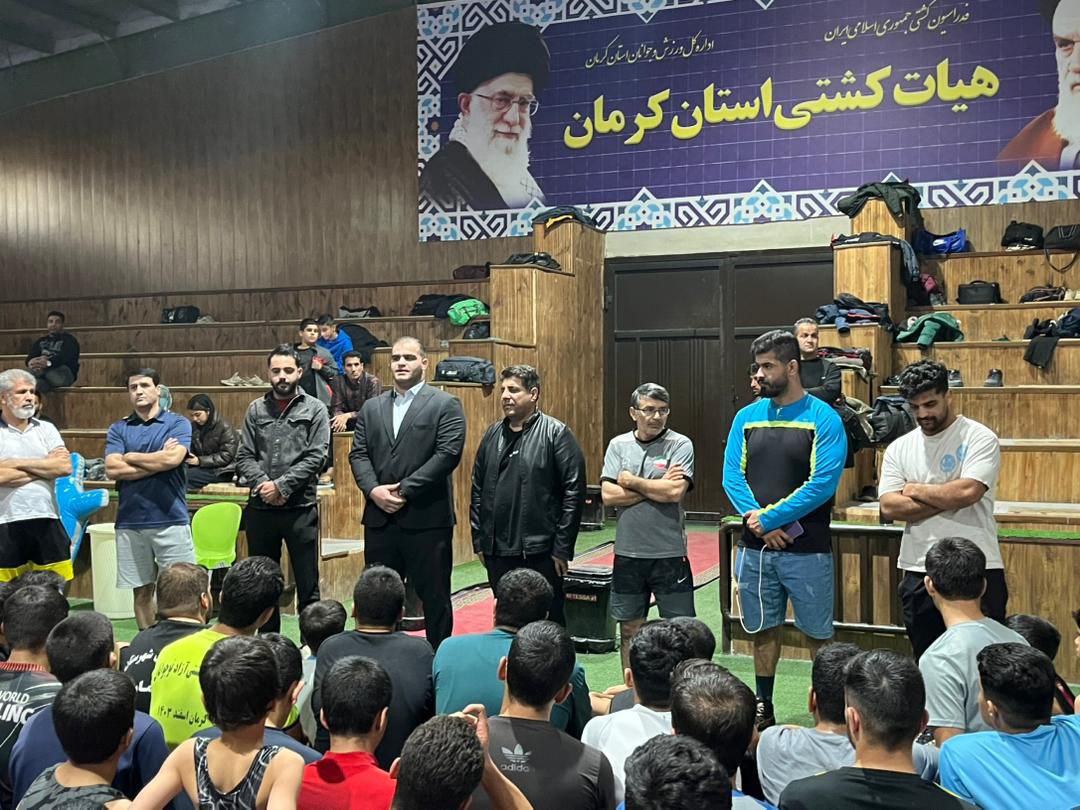 امین میرزازاده قهرمان سنگین وزن کشتی فرنگی جهان دیروز با حضور در شهر کرمان در جمع کشتی گیران حاضر در خانه کشتی شهید حاج قاسم سلیمانی حضور یافت.